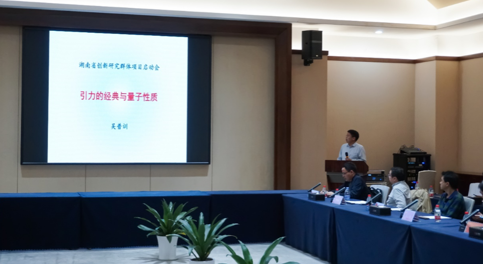 4月19日,“引力与量子信息交叉研究团队”带头人吴普训教授承担的2024年湖南省创新研究群体“引力的经典与量子性质”项目启动会在长沙顺利召开。湖南省自然科学基金委员会办公室主任杨剑,中国科学院院士、中国科学院大学副校长吴岳良教授,威廉希尔副校长谢资清、低维量子结构与调控教育部重点实验室主任匡乐满、物理与电子科学学院党委书记罗嵘,物理与电子科学学院余洪伟教授等领导和专家出席会议。会议由物理与电子科学学院院长、交叉科学研究院院长刘红荣主持。