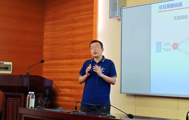 徐勋卫以“光力方格的非互易路由”为题介绍了路由器的工作原理,并提出了非互易路由的概念。他介绍了利用光力耦合构造人造磁场的方法,在此基础上设计了基于光力方格非互易路由的实现方案。他详细阐述了四个端口之间的散射关系,并在红失谐条件下获得实现非互易量子路由的最优参数条件。他提出并展示了力学振子简正模式下系统各端口之间的散射强度以及非互易路由器的功能。